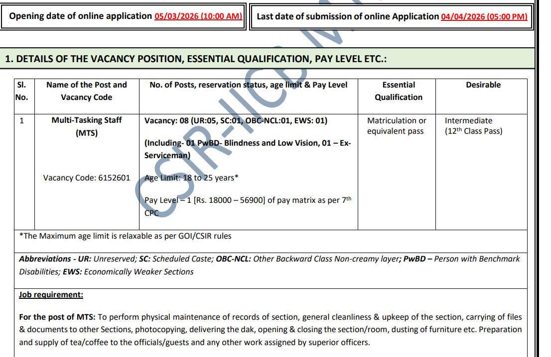 CSIR , में आई मात्र दसवीं पास के लिए वैकंसी जल्दी Apply करो