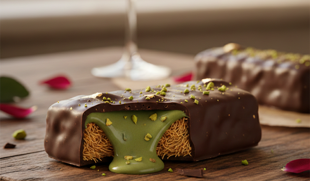 1. वायरल दुबई पिस्ताचियो चॉकलेट बार (Viral Dubai Pistachio Chocolate Bar)